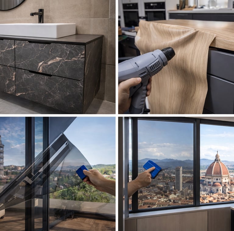 Wrapping mobili, Pellicole solari, Adesivi vetrine, Pellicole adesive Stand